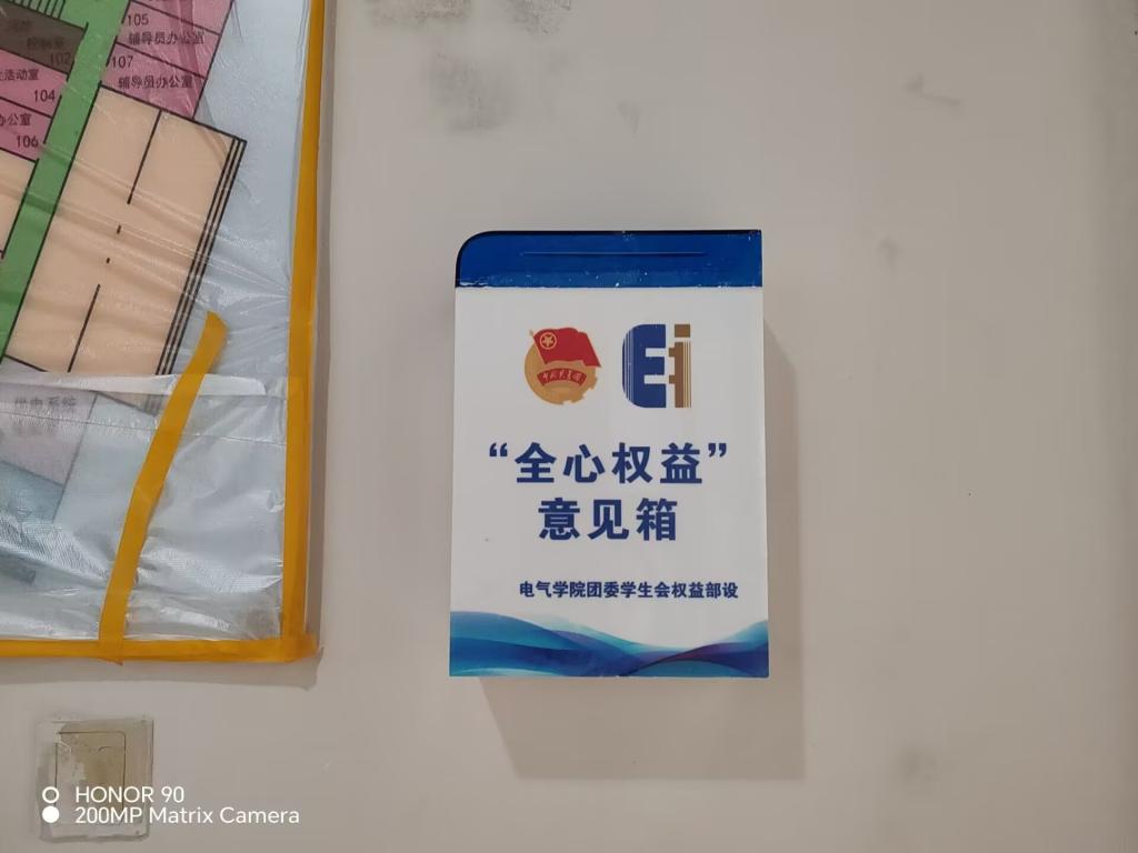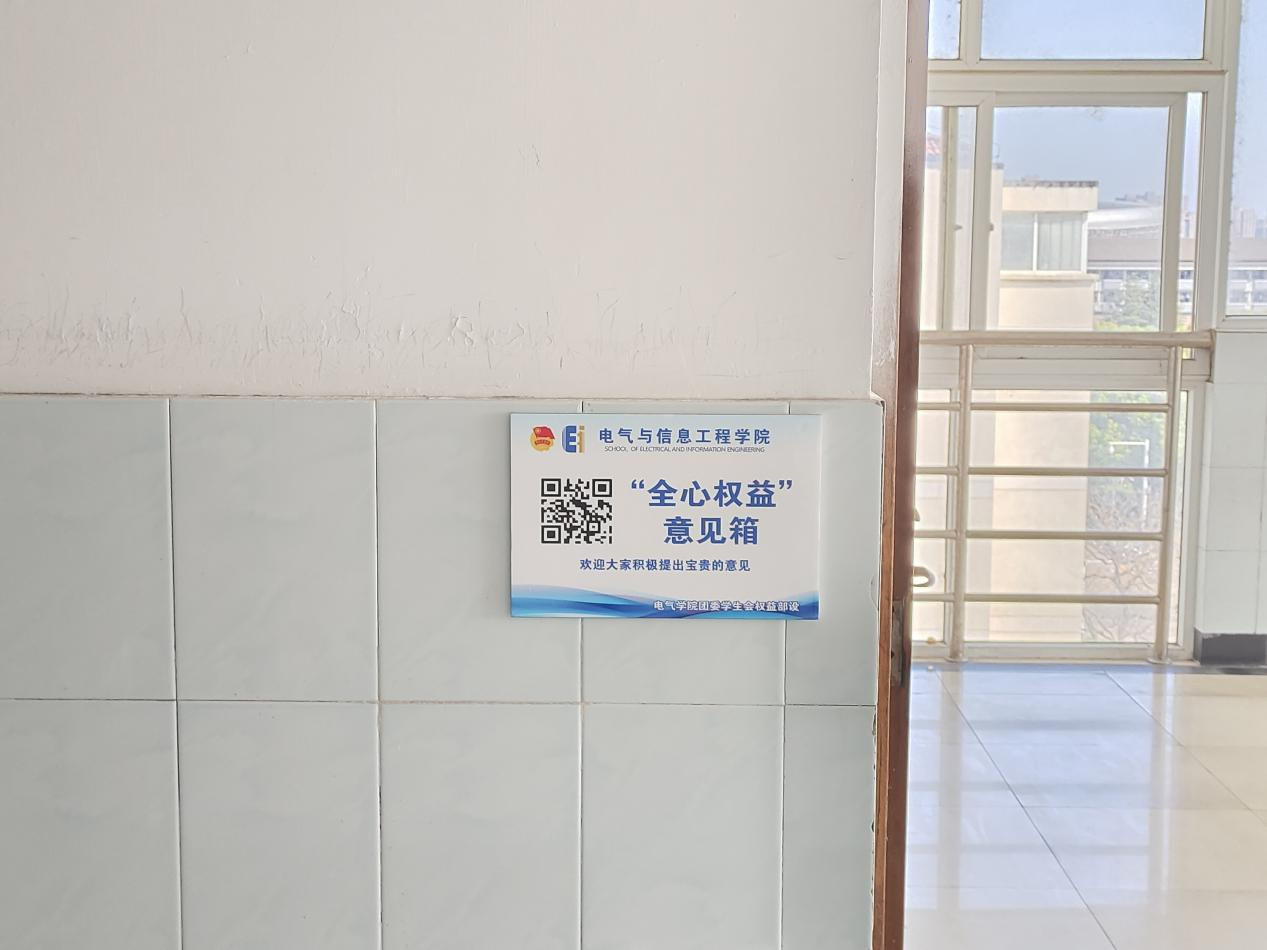 在23级、24级同学居住的A栋、C栋、E栋、K1、K2、L2栋各宿舍楼层楼梯口,统一张贴了专属意见反馈标识牌,同学们只需扫描牌面二维码,即可轻松提交各类诉求与建议。同时,电气楼原有线下意见箱继续保留,以满足不同同学的使用习惯和反馈偏好。后续,海角社区