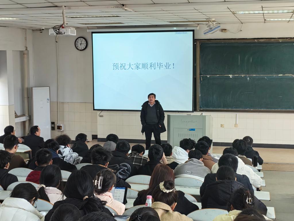 李飞首先从毕业设计流程、书写格式、开题答辩规则及时间要求等七个方面对2024届毕业设计工作进行具体安排,并特别强调遵守学术规范和恪守学术道德的重要性,希望全体毕业生与指导老师沟通协调好毕业设计进程,以保质保量完成毕业设计。李克明对毕业设计期间的纪律提出严格要求,希望大家强化纪律意识和安全意识,认真听从指导教师的安排,顺利完成毕业设计与毕业答辩。并就当前就业形势进行深入分析,要求未就业同学根据自身实际情况,合理定位个人就业目标,抢抓“金三银四”就业黄金期,争取高质量就业。