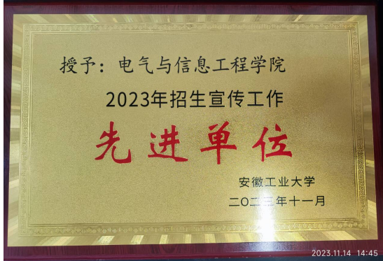 荣获学校2023年招生宣传先进单位。