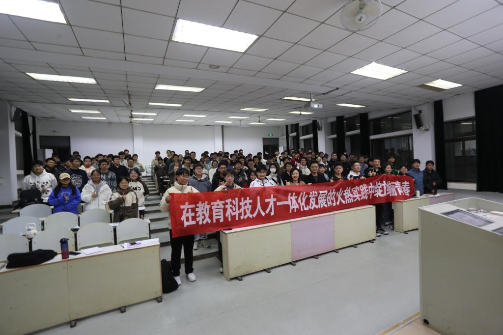 启动仪式上,甘如美江围绕习近平总书记在党的二十大报告中提到的“敢想敢为又善作善成”展开,希望我们广大电气学子将自己的学习抱负与新时代的国家发展相结合,将“敢想敢为又善作善成”落到实处。杨恒基以竞赛中的团队磨合,项目研究历程为话题,向同学们分享了自己在安工大的科创经历,并与同学们讨论探索参加科创赛事的方法。会后两位老师对于大学生为什么要创新创业,如何创新创业,以及创新创业需要什么能力,大学生创新创业的趋势和特点,有效途径和方法等进行一一解答。