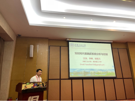 院长沈浩教授带队参加会议,并在大会上做题为《双时间尺度跳跃系统分析与控制》的专题报告,同时向与会专家介绍我校系统科学及其相关学科最新的学术进展。