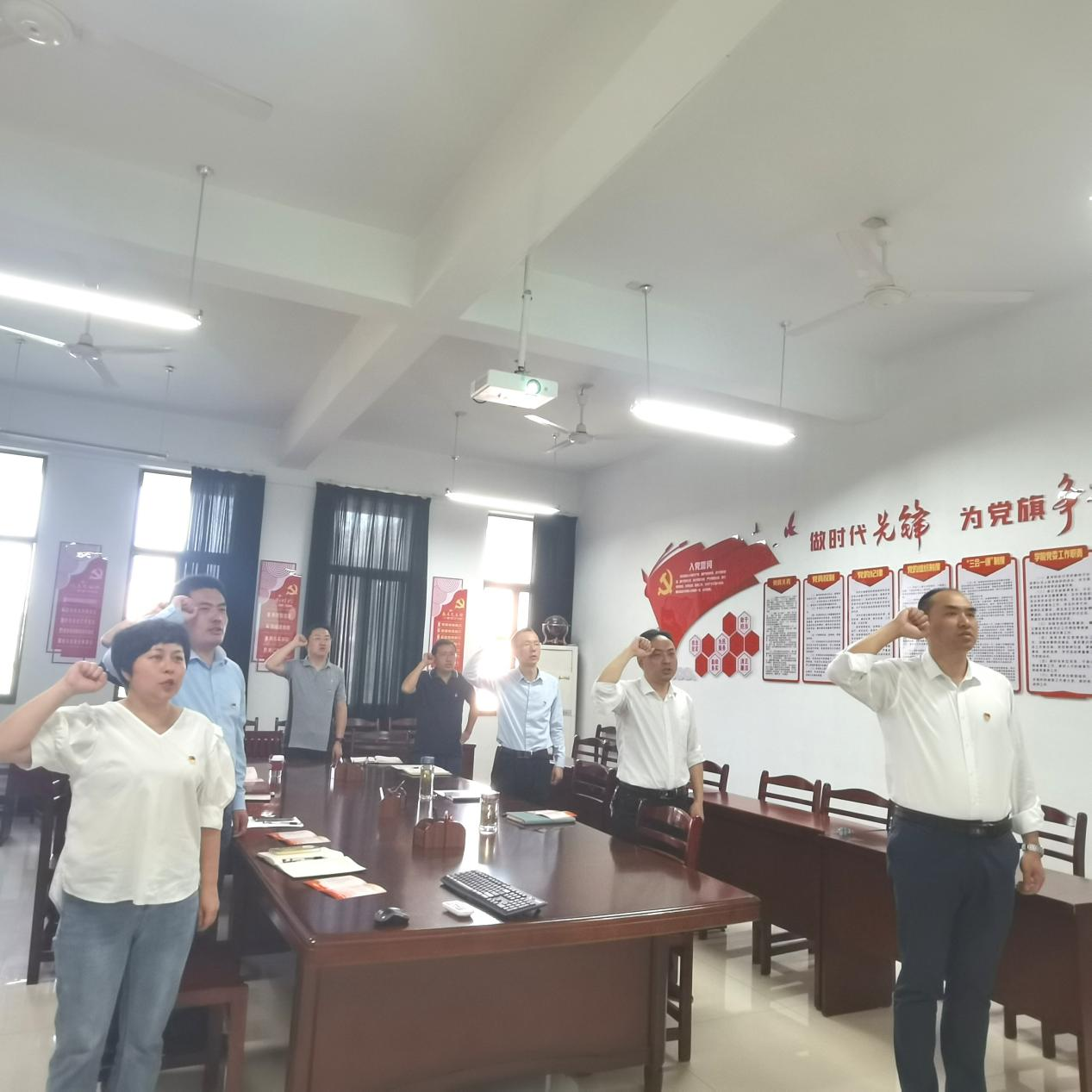 本次活动分为发放政治生日贺卡、重温入党誓词、党员代表分享政治生日感言等环节。丁忠利、夏玉钦分别向本次过“政治生日”的党员赠送“政治生日”贺卡,带领大家重温入党誓词。党员代表刘晓东、马小三、罗进3位同志分别回顾了自己的入党初心,讲述了自己的入党经历和入党后的成长历程,表达了自己不忘初心、牢记使命,争做先锋模范共产党员的决心和信心。
