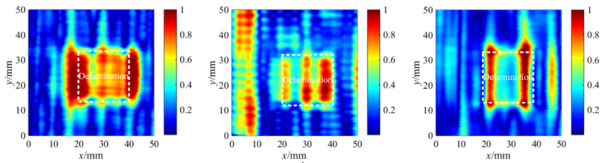三种典型CFRP铺层结构(单向板、正交板、多向板)分层损伤涡流检测的结果
