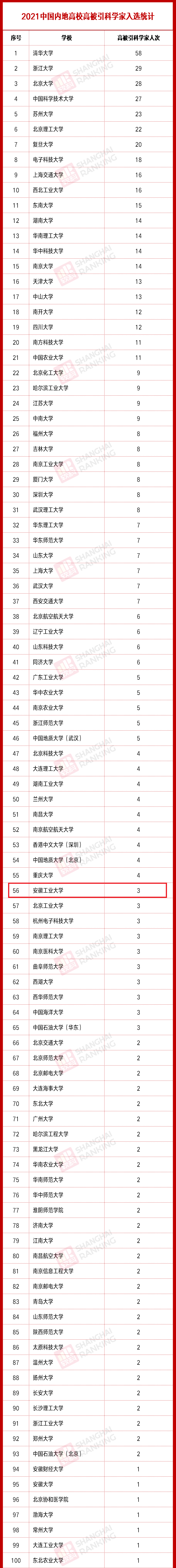 2021年度,全球70多个国家和地区的各领域高被引科学家共6602人次上榜,中国内地上榜达935人次,创有史以来最高纪录。我校上榜人次位列省属高校第一。(撰稿:蔡文雅 审核:陈翔 张苒 杜飞)