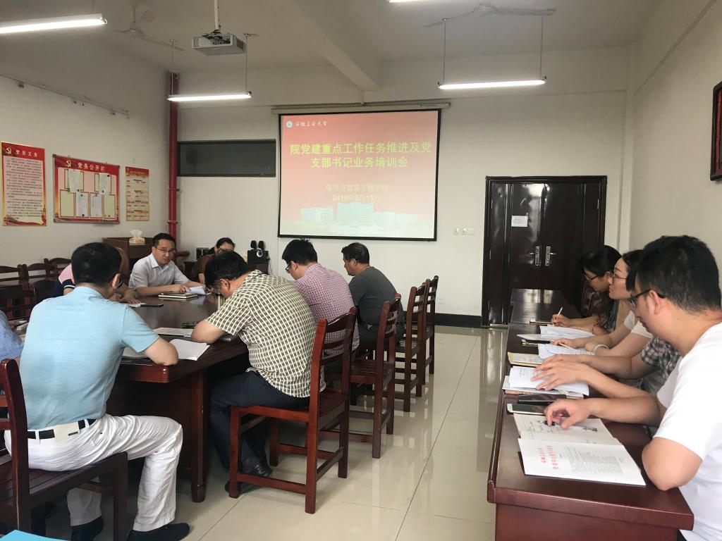 在304会议室召开党建重点工作任务推进及党支部书记业务培训会。学院党委书记、党委副书记、全体党支部书记参加了会议。会议由院党委书记叶凤华主持。