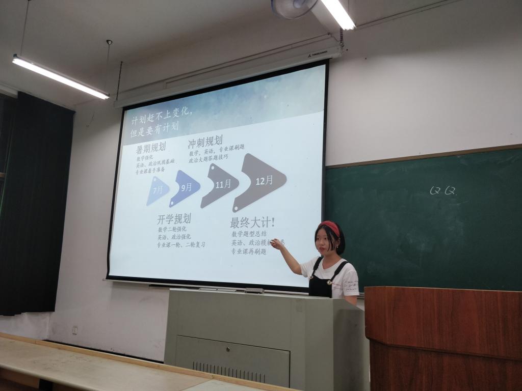 的考研情况,向大家解读了考研的意义与价值,鼓励备战考研的2015级同学从考研决定的那刻起,树立信心、坚持不懈、用勤奋实现自己的梦想,为青春博彩。