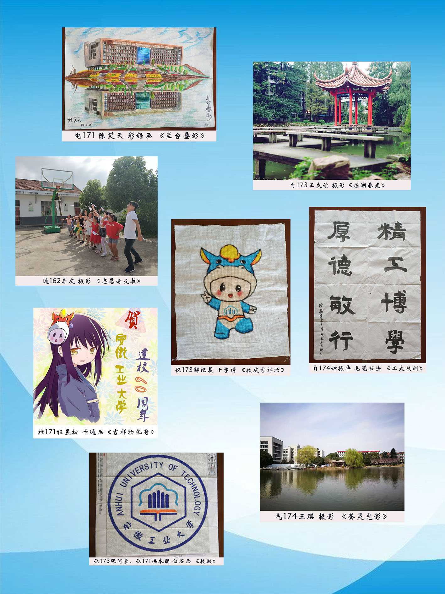 院团委学生会负责组织各年级各班级精心策划、广泛动员,深入挖掘有艺术才能的学生,充分调动大家参与本次活动的积极性、主动性、创造性。各年级学生踊跃参与、认真准备,以摄影、彩铅画、十字绣、钻石画、卡通画、书法、剪纸等多种艺术形式展示学校校徽、校训、校庆吉祥物,呈现校园风景、人物和故事。一幅幅倾注了电气学子热情和心血的作品,记录着大家的工大印象,彰显了大家的青春风采。从征集到的100多幅作品中,海角社区