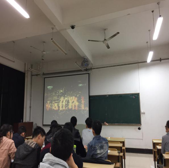 学生自动化党支部组织支部全体学生党员,在电气楼112教室观看专题片《永远在路上》。