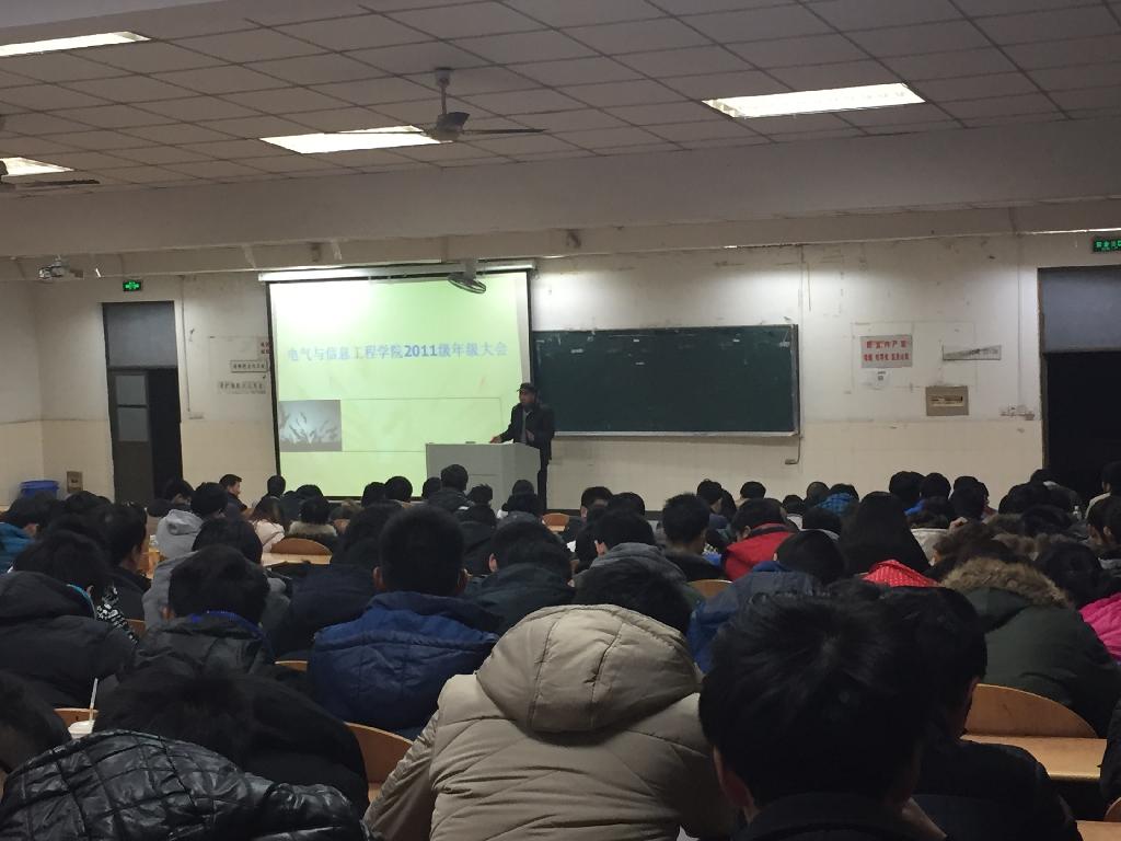 于12月30日晚在东阶101室召开2011级年级会。院党委副书记、学生工作副院长郭宏、大四辅导员孔洋波、陶源以及2011级全体毕业班学生出席了本次大会。会议由孔洋波主持。