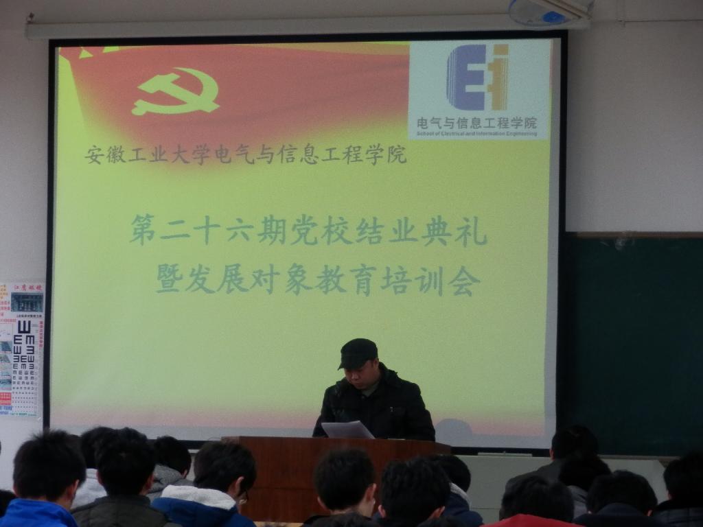在电气楼113教室举行了第26期党校结业典礼暨发展对象教育培训会。会议由党校班主任尚全主持,海角社区
