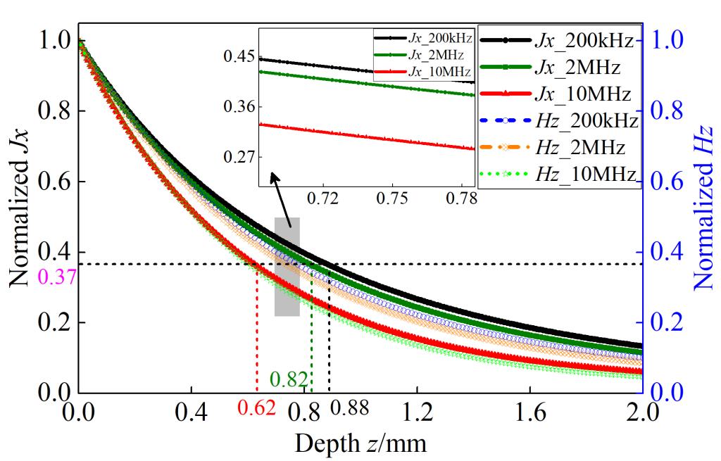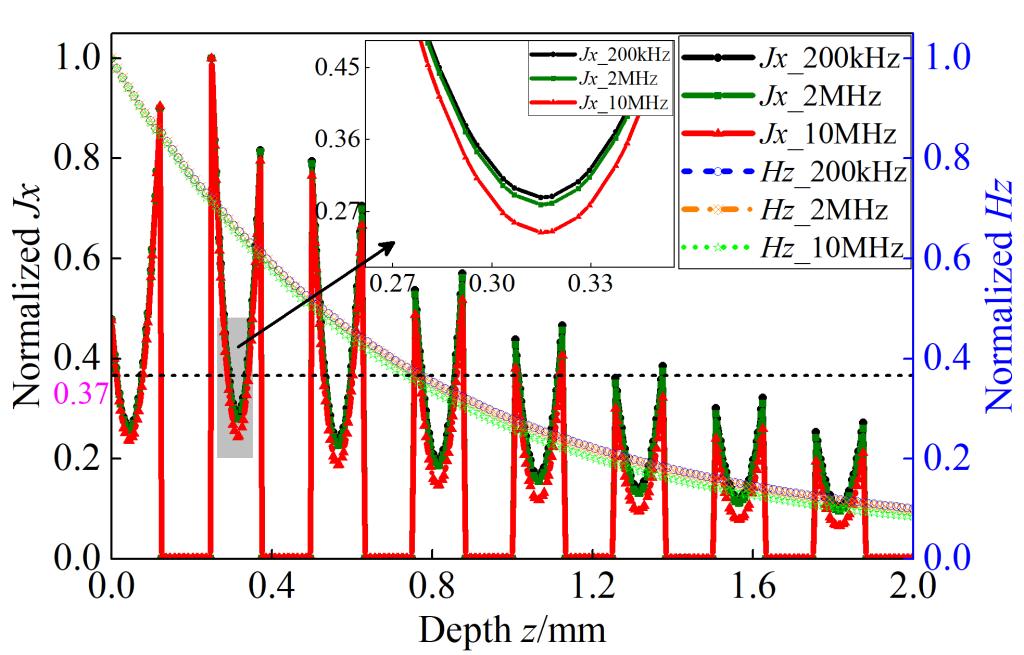 为满足CFRP损伤涡流检测的应用需求,本研究探索了电磁场在多层CFRP板结构中的传播、衰减与扩散特性,解决了多层导电介质交界面处的场量突变问题。研究结果表明,材料的电各向异性是电磁场快速衰减的关键因素,由波印廷定理知强电各向异性造成更多的能量损耗,使得电磁场的衰减特性与频率无关。铺层变化是影响电磁场衰减与扩散的又一重要因素,电磁场的衰减与扩散和相邻铺层角度差呈反比。从入射场角度看,激励源形状是影响电磁场传播特性的另一重要因素,电磁场的衰减与扩散和激励源形状呈反比。该研究结果为定量检测与评估CFRP结构深处缺陷奠定了理论基础,同时为涡流检测探头的设计/优化提供了理论依据。