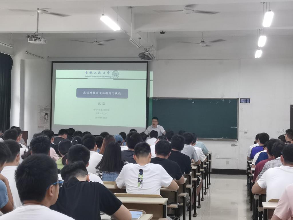 会上,沈浩教授从学术价值、方案可行性和研究发展性的三个原则出发,阐述了学术研究选题的重要性;结合案例深入剖析了电气相关专业科技论文的基本架构和论文各组成部分的基本要求,并介绍了论文投稿过程中的常见问题及注意事项,讲座受到了师生的热烈欢迎。
