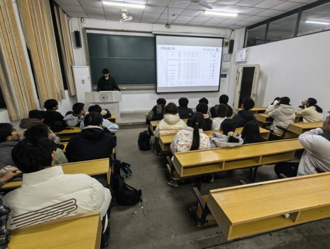 辅导员、各班班长、学委牵头主持本次班会,全程紧扣“复盘总结、查摆问题、规划提升”核心展开。会上,班长结合班级成绩单、四级通过率统计数据,详细通报了班级期末各科成绩分布、平均分、及格率以及四级考试通过人数、分数段分布等具体情况,清晰梳理出班级整体学习优势与薄弱环节;同时对成绩优异、四级顺利通过的同学予以表扬,树立朋辈学习榜样。针对期末成绩不及格的课程、四级考试未通过的共性问题,各班组织学生开展分组讨论,成绩优异的同学分享学习方法、备考技巧,暂未达标的同学主动剖析自身问题,从学习态度、时间管理、复习规划等方面交流反思,在交流探讨中找准自身学习短板。