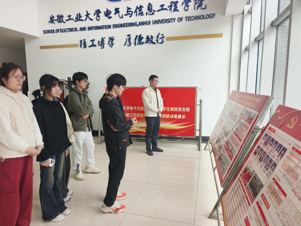 学生测控党支部在秀山校区电气楼一楼开展“全国党建工作样板支部”培育创建成果展示活动,系统梳理支部建设经验,集中展示党建育人成果。
