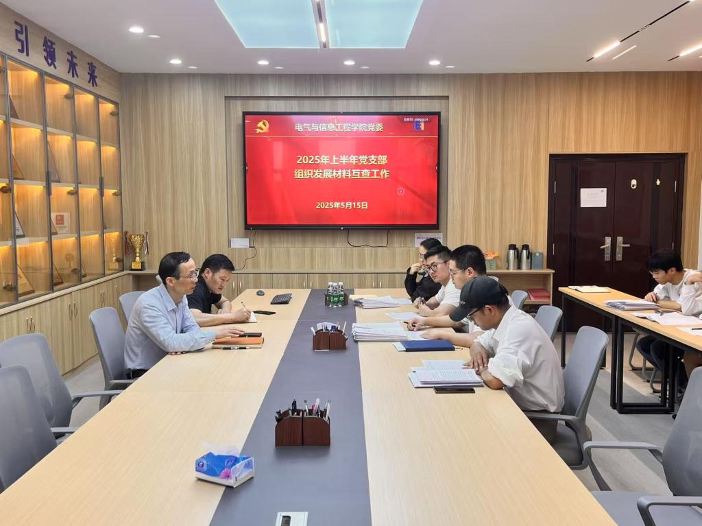 为了做好组织发展材料的完整性和规范性,严格党员发展程序,提高党员发展质量。5月15日,学院党委在电气楼308室开展2025上半年组织发展材料互审工作,学院党委书记丁忠利、学院党委副书记孔洋波和党支部书记参加。