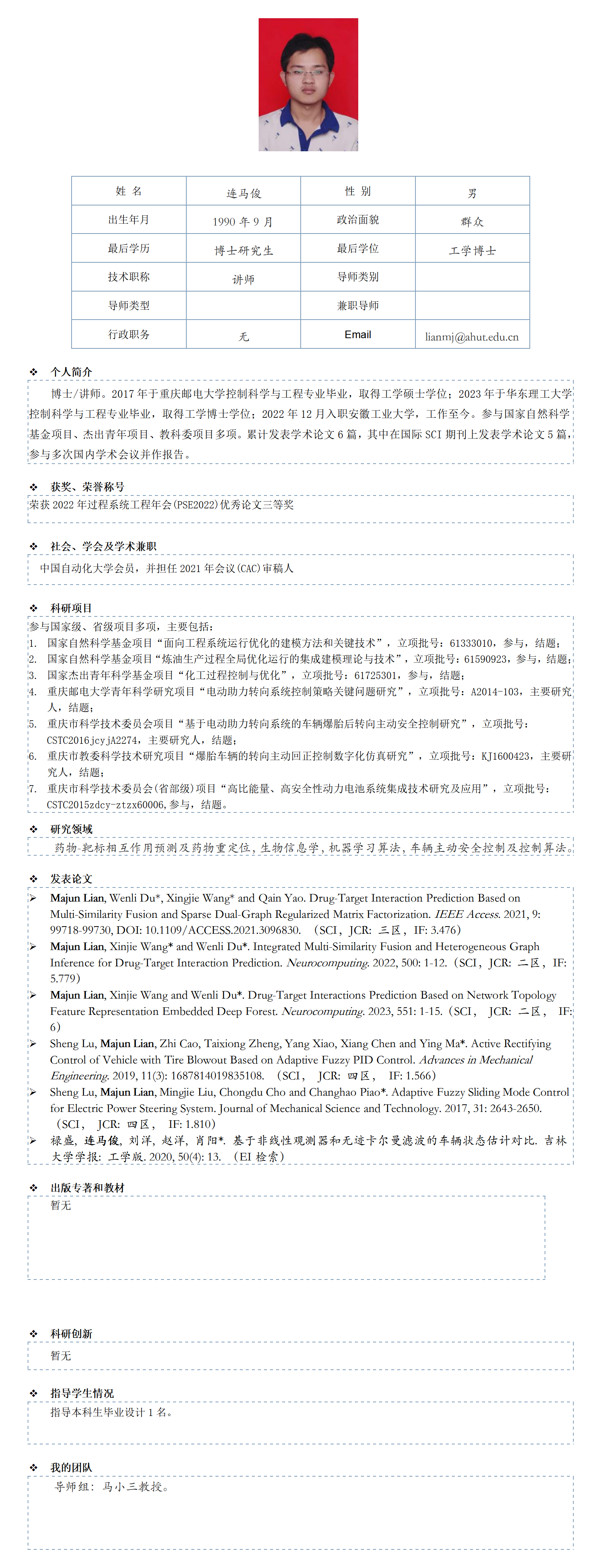 连马俊 博士