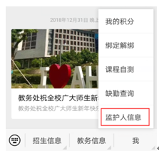 请各位同学关注“安徽工业大学教务处”微信平台,并绑定相关个人信息后,于2019224之前在平台上提交父母或监护人信息,至少填写一位父母或监护人信息。224之后平台将不再接收信息提交。具体操作如下: