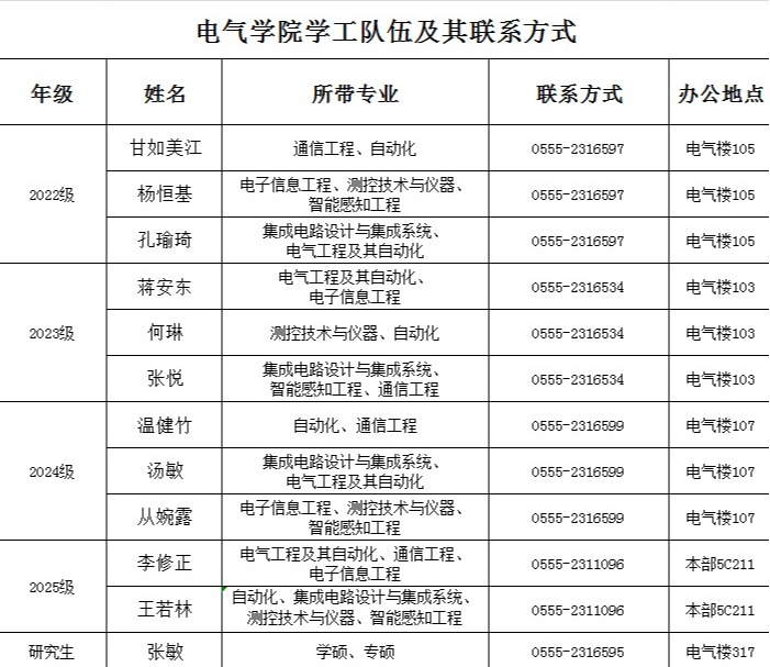 电气学院学工队伍及联系方式