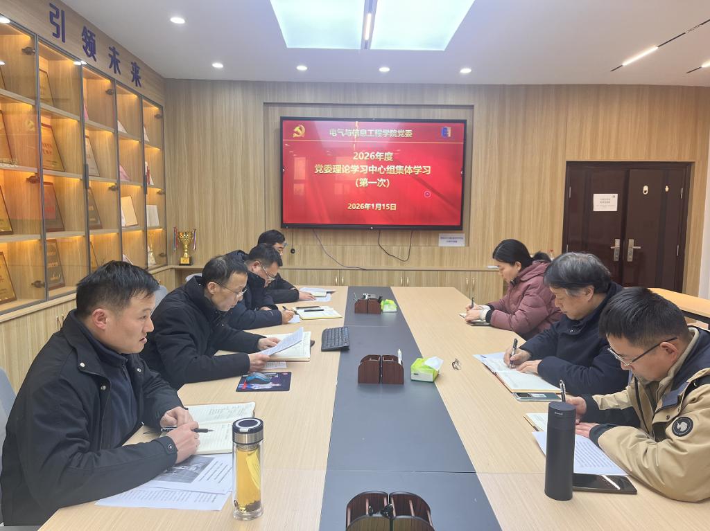 1月15日下午,学院党委理论学习中心组开展2026年第一次集体学习会,学院党政领导班子成员、党委委员、科级干部代表参加学习,学院党委书记丁忠利主持会议。