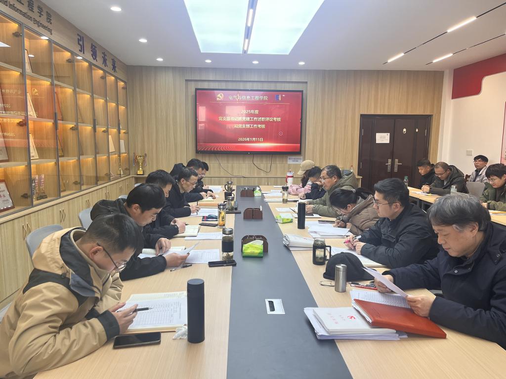 1月15日,学院党委在电气楼308会议室召开2025年度党支部书记抓党建述职评议会,学院党政领导班子成员、党委委员、纪委委员、党支部书记、系室(中心)主任、工会主席、科级干部等参加会议,会议由学院党委书记丁忠利主持。