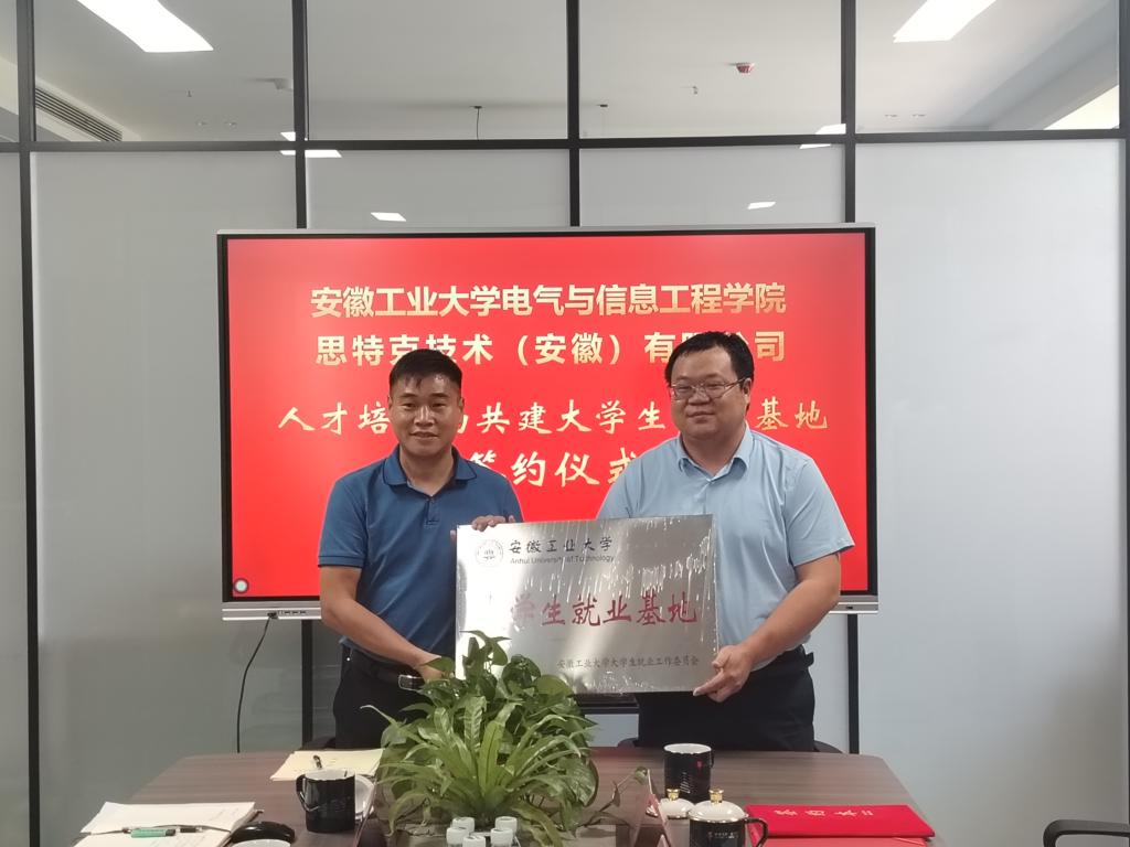 期间,双方围绕技术人才需求、就业实习基地建设、产学研合作等方面进行了深入交流。孔洋波代表学院与思特克技术(安徽)有限公司签订了人才培养与大学生实习实训基地合作共建协议、大学生就业基地建设合作协议。程木田为思特克技术(安徽)有限公司进行了“大学生就业基地”授牌。座谈会后,程木田一行参观了公司生产车间,详细了解了企业生产流程、产品特色等。