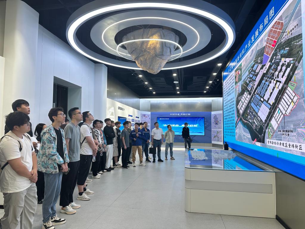 孔洋波一行实地参观了安徽宝镁轻合金有限公司数字化展示中心和产品展示大厅,听取了关于镁铝轻合金产业产品发展趋势和技术创新的详细介绍,通过深入了解了从矿石开采、镁基轻合金生产制造到深加工应用的全产业链布局,师生们切身感受到高新技术产业的发展活力,以及绿色制造、智慧驱动在新质生产力发展中的重要作用。