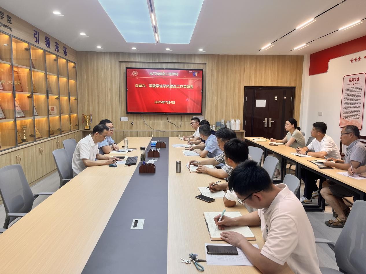 为进一步加强学风建设,全面推动“学风建设提升行动”走深走实,营造良好的育人环境,7月4日,学院在电气楼308会议室召开学风建设工作专题会议。学院党委书记丁忠利,副院长(主持工作)程木田,党委副书记、纪委书记、副院长孔洋波,副院长张前进,系室主任、党支部书记、辅导员及教师代表出席会议。会议由孔洋波主持。
