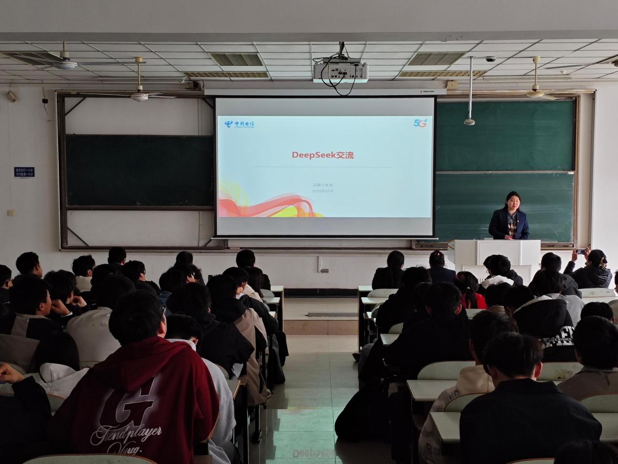 讲座中,谢常春结合国家的发展态势,深入浅出地剖析了通信与电子行业的发展趋势,指出学生在大学期间应掌握的专业知识和实践应用能力,并以电信系统里的职业发展案例,为同学们提供一份清晰的职业规划建议。张艺彤以“DEEPSEEK在通信领域的应用”为主题,详细介绍了DEEPSEEK这一前沿技术的基本原理、性能特点以及在通信领域的应用案例,分析了人工智能技术在应用过程中面临的挑战与解决方案。报告中,两位主讲人还耐心解答同学们关心关注的问题。通过行业专家的报告,同学们充分认识到提前做好学业规划和职业规划的重要性。