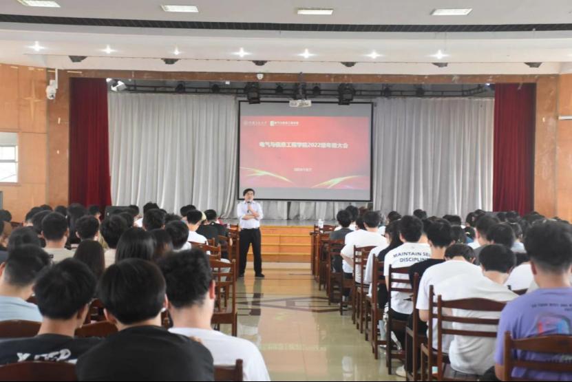 为了加强大学生安全意识,提高同学们预防电信诈骗的能力和纪律意识,电气学院于6月6日中午在老大学生活动中心围绕安全教育召开了电气学院2022级年级大会。院党委副书记、纪委书记、副院长李克明、2022级辅导员李修正、甘如美江、杨恒基及全体2022级同学参加会议。