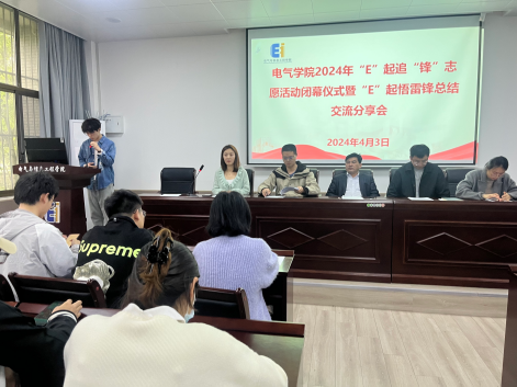 4月3日中午,电气与信息工程学院2024年“E”起追“锋”志愿活动闭幕仪式暨“E”起悟雷锋总结交流分享会在秀山校区电气楼113报告厅召开。学院党委副书记、纪委书记、副院长李克明,副处级辅导员李修正,院团委副书记杨恒基、汤敏老师,各年级团学干部、获奖团支部及学生代表共100余人出席闭幕仪式。此次会议由院团委书记甘如美江主持。