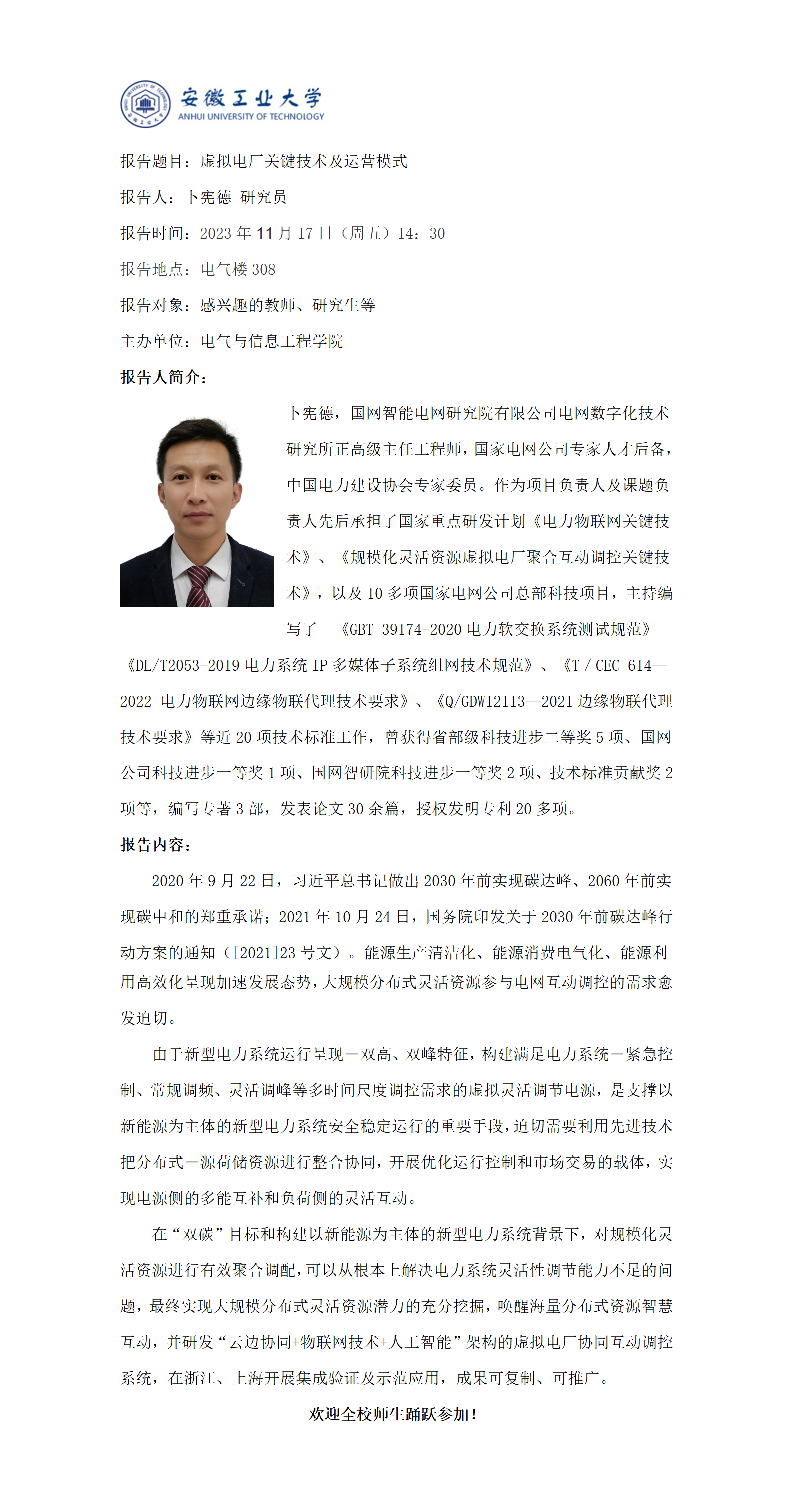电气与信息工程学院”谦之“学术讲坛之五十二