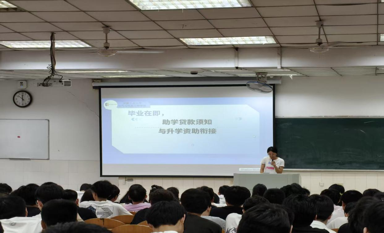 2025年6月11日,学院以“毕业在即,助学贷款须知与升学资助衔接”为主题,在阶教102、103教室举行资助政策宣讲会,2021级全体毕业生参加。宣讲会上,宣讲团成员聚焦毕业生离校前最关切的问题,对助学贷款还款流程、期限、方式以及入伍服兵役学费补偿与国家助学贷款代偿等政策进行了详细解读。宣讲内容注重厘清各类资助项目在升学、就业等不同场景下的衔接与区别,有效消除了他们在贷款偿还与学业深造衔接上的信息盲区与顾虑,助力2025届毕业生满怀信心地开启人生新篇章。