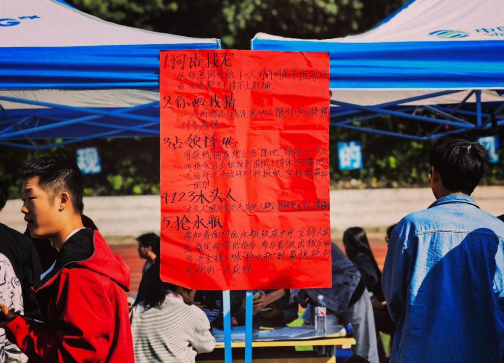 开幕式活动精彩纷呈,融合趣味与心理元素:“词语接龙”激发思维火花,“抢水瓶”考验反应与默契,“占领阵地”彰显团队精神,“123木头人”唤醒童年记忆。最受欢迎的“限时你画我猜”环节中,七人一组,一人执笔绘画,其余同学围坐草地,展开想象的翅膀。阳光下,一张张真挚的笑脸,成为这个秋日最动人的风景。“活动不仅让我认识了新朋友,也让我学会更好地觉察情绪、关爱自己。”一位新生在分享中说道。