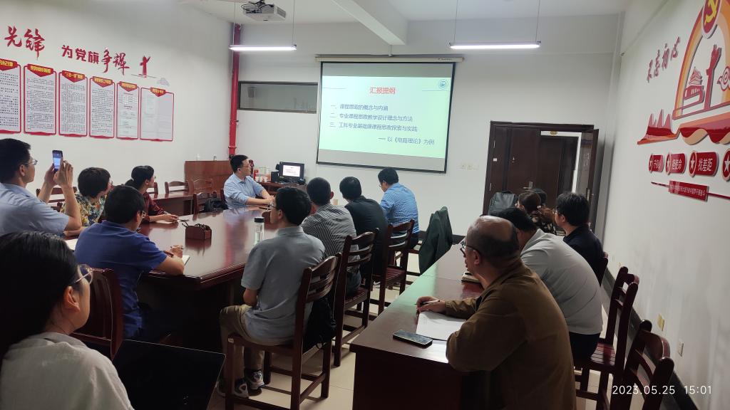 程木田强调,课程思政是落实立德树人根本任务的重要举措,此次讲座不仅给我院教师探索课程思政建设提供了“术”的范例,而且为我院教师进一步加深对育人的认识提供了“道”的指引,让大家对思政内容融入专业课程的认识有了进一步的提升;他要求各系室要进一步提高思想认识,深入研究教法和教改,将课程思政与专业思政联系相结合,持续开展课程思政建设,全面落实好立德树人根本任务。本次活动也是学院“映书湖畔”教学活动第十五期。