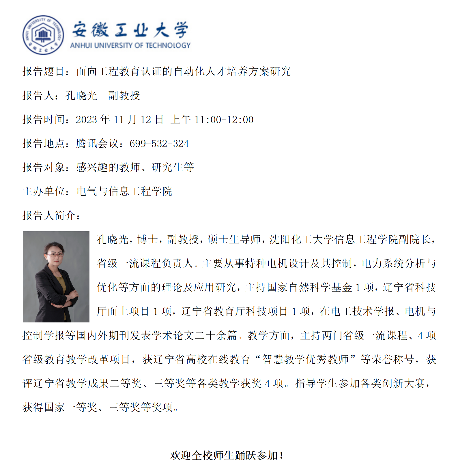 【“映书湖畔”教学讲坛之十九】面向工程教育认证的自动化人才培养方案研究