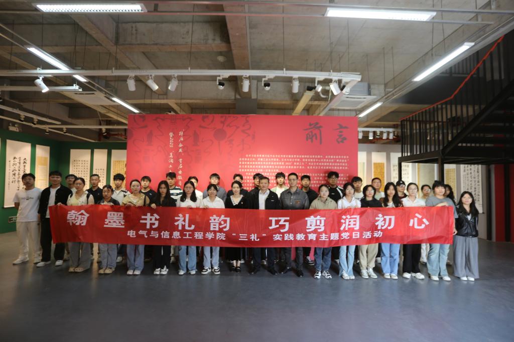 为深入贯彻习近平总书记关于弘扬中华优秀传统文化的重要论述,推动思想政治教育与“三礼”教育的深度融合,引导学生党员深刻领悟中华优秀传统文化的时代价值,进一步增强文化自信。5月10日,学院党委组织学生党员开展“翰墨书礼韵 巧剪润初心”主题党日活动,通过“观展悟礼—体验践礼—党课传礼”三部曲,打造一堂行走的“文化育人课堂”,活动由学生测控党支部承办。