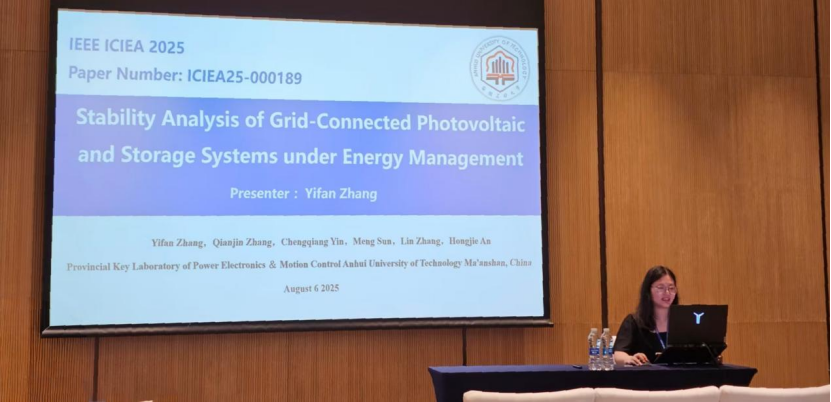 2025年8月3日至8月6日,第20届IEEE工业电子与应用会议(ICIEA 2025)在山东烟台隆重召开。我院2023级硕士研究生张逸帆(导师:张前进)在本次会议中做了题为“Stability Analysis of Grid-Connected Photovoltaic and Storage Systems under Energy Management”的口头报告。
