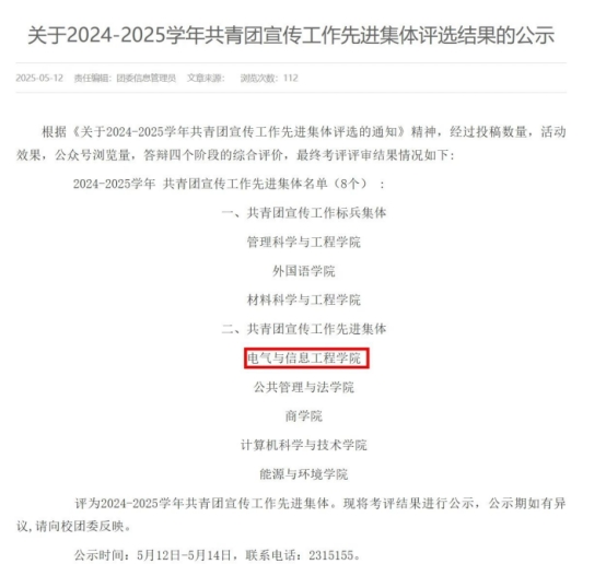 校级“共青团工作先进单位”—— 电气与信息工程学院团委