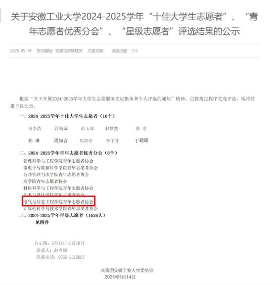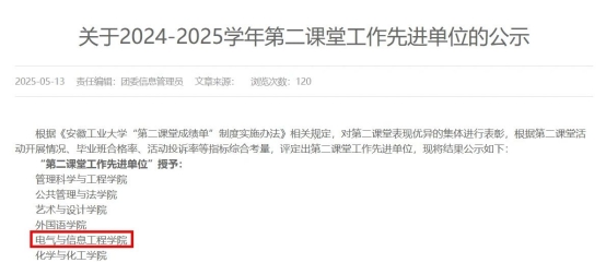 以奋斗为笔,以汗水为墨,学院在2024 年交出了一份令人瞩目的优异答卷!在安徽工业大学举办的 2024-2025学年校团委学生会工作考评中,我院斩获全部集体荣誉,每一项荣誉都闪耀着电院学子拼搏奋进的光芒,快来一起看看这些荣耀时刻吧!