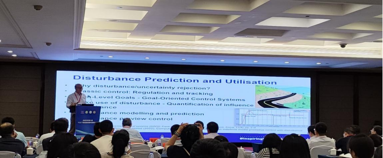 主旨报告环节,皇家墨尔本理工大学余星火教授以《Switching in Discontinuous Control: Myths, Pitfalls, and Opportunities》为题,系统剖析了非连续控制中的核心挑战与潜在机遇;英国拉夫堡大学陈文华教授分享了《Recent Progress and Some Open Problems in Disturbance Observer-Based Control》,探讨扰动观测控制的最新进展;东南大学教授李世华结合机电系统应用场景,展示了非光滑控制方法的创新研究成果。会议还设置多场专题论坛,与会期间学院教师与江苏大学、东南大学等高校专家学者深入交流,探讨“工业互联网实时控制”“大模型与群体智能融合”等前沿议题。李飞介绍了我校在产教融合平台搭建、校企联合培养及智能控制技术研发方面的实践成果,并分享了团队在非连续控制领域的最新研究进展,受到与会专家们高度关注。