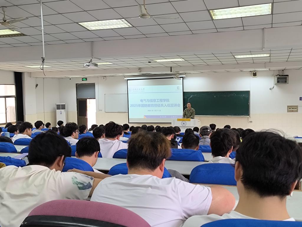 为持续高质量推进2025年大学生征兵工作,强化青年学生的国防观念和矢志报国的使命担当,4月11日,我院在东教一阶102、103举办2025年毕业生应征入伍工作宣讲会,会议邀请学校征兵工作站嵇虎老师主讲,毕业班辅导员、2025届全体毕业生参加了会议。