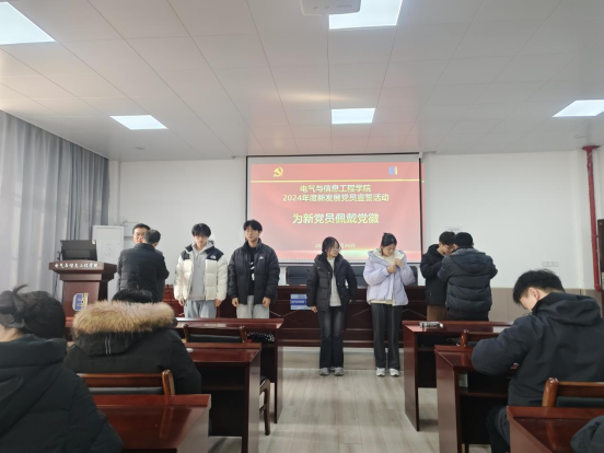 为深入贯彻落实党的二十届三中全会精神,进一步提高党员同志的政治站位和思想认识。12月26日,学院党委在电气楼113教室举行新党员入党宣誓仪式暨专题党课。学院党委书记丁忠利,学院党委副书记、副院长、纪委书记李克明,学生电气工程党支部副书记蒋安东、2024年下半年新发展党员以及学生电气工程党支部全体党员参加活动,李克明主持。