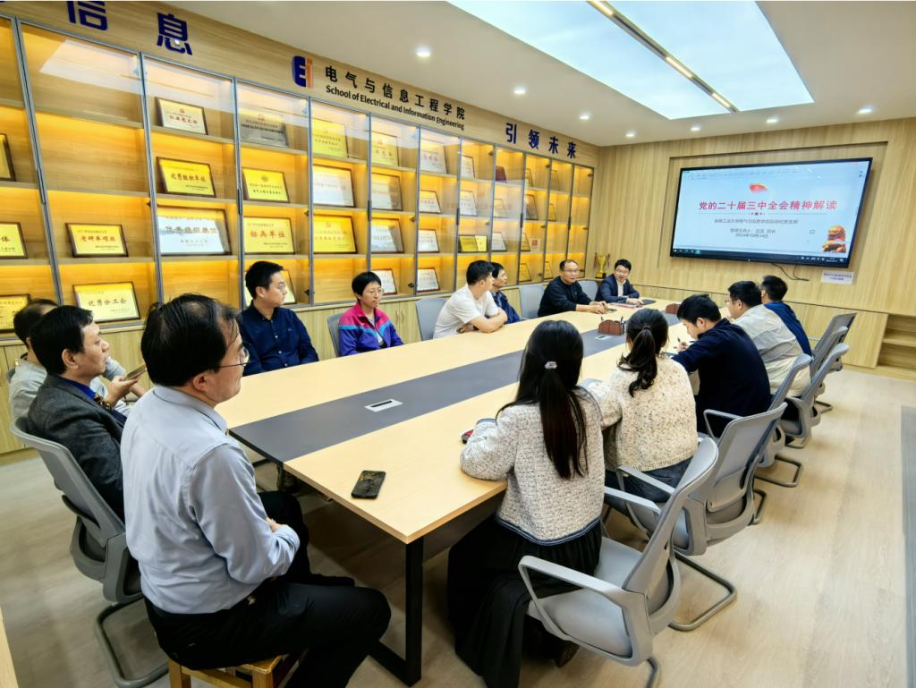 10月14日下午,学院教工自动化党支部举办了一场“学习贯彻党的二十届三中全会精神”的专题党课,由学院党委副书记、院长沈浩教授主讲,党支部书记孔庆凯主持,自动化系全体教师参加了学习。
