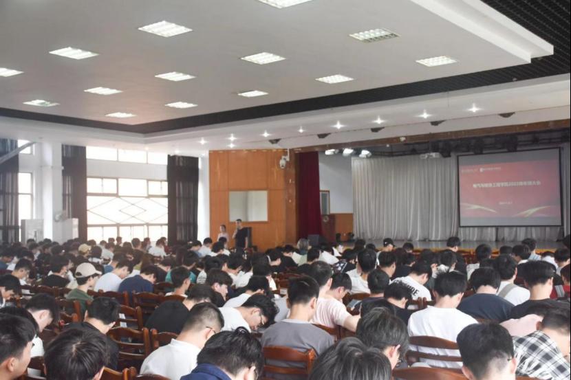 为了加强大学生安全意识,提高同学们预防电信诈骗的能力和纪律意识,电气学院于6月6日中午在老大学生活动中心围绕安全教育召开了电气学院2022级年级大会。院党委副书记、纪委书记、副院长李克明、2022级辅导员李修正、甘如美江、杨恒基及全体2022级同学参加会议。
