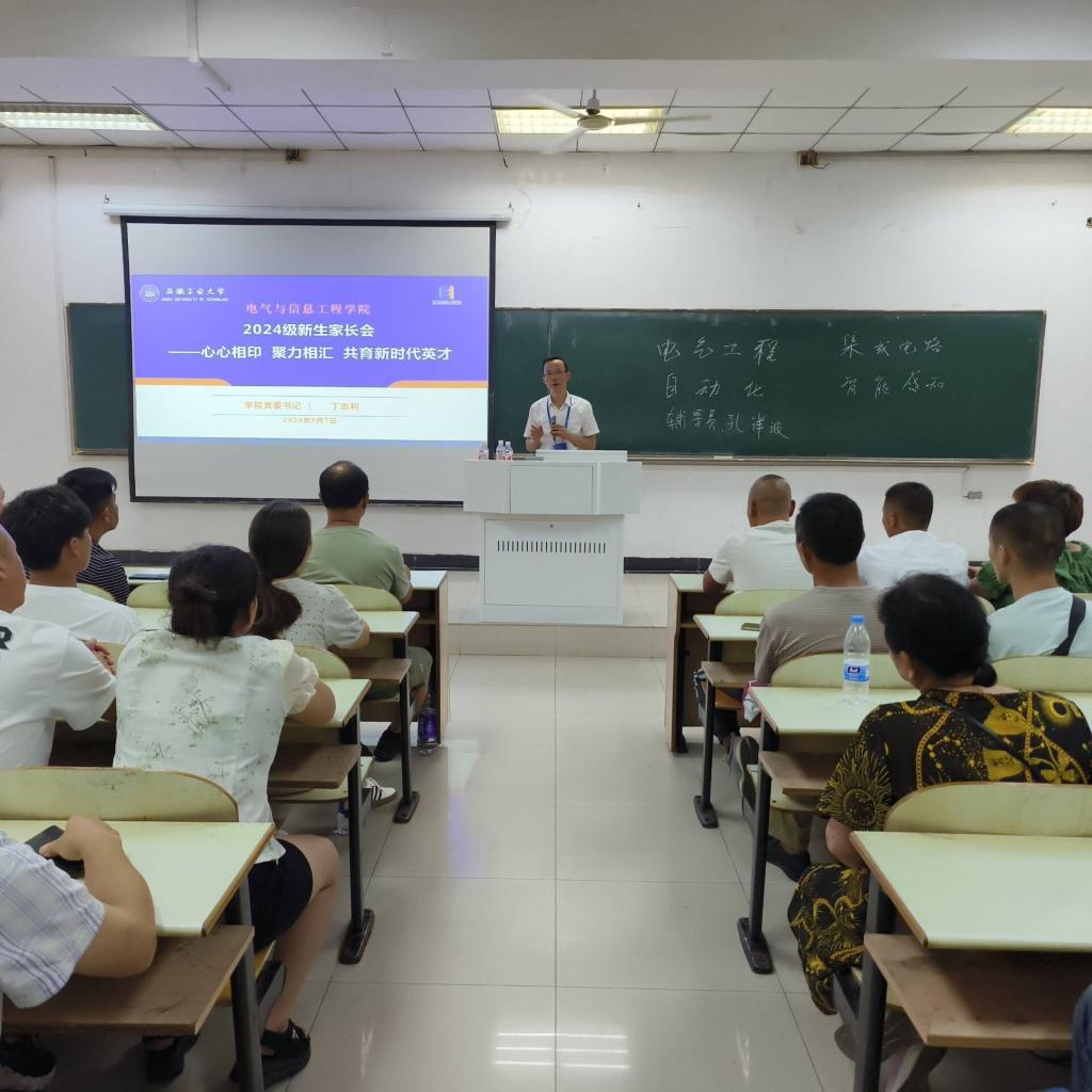 为了更好落实家校协同共育,凝聚家校合力,9月7日下午,电气与信息工程学院在佳山校区教三103、教三102召开了2024级本科新生家长见面会,全体辅导员以及700多位新生家长、部分新生参加会议,学院党委书记丁忠利,副书记、副院长李克明出席会议。