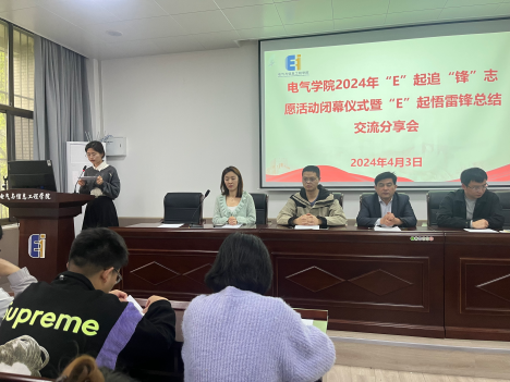 4月3日中午,电气与信息工程学院2024年“E”起追“锋”志愿活动闭幕仪式暨“E”起悟雷锋总结交流分享会在秀山校区电气楼113报告厅召开。学院党委副书记、纪委书记、副院长李克明,副处级辅导员李修正,院团委副书记杨恒基、汤敏老师,各年级团学干部、获奖团支部及学生代表共100余人出席闭幕仪式。此次会议由院团委书记甘如美江主持。