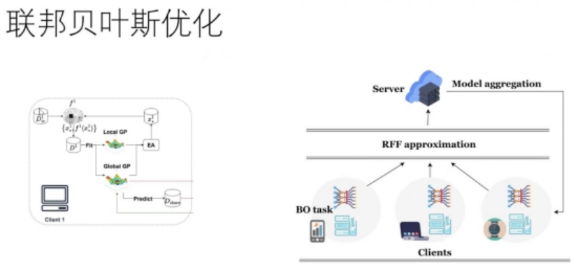 报告中,王曦璐深入介绍了多个相关的本地黑箱任务与不同客户端在有关联情景下的联邦贝叶斯优化,通过在本地设备上训练模型,再将模型的更新聚合到中央服务器,从而达到保护用户数据的隐私与安全来实现大模型学习。他指出在采用联邦贝叶斯优化时的高斯过程超参数可以控制模型的预测,通过分享每个客户端高斯过程的超参数来实现知识迁移并防范用户数据的泄露。在使用联邦贝叶斯优化进行模型融合过程中,针对数据的相似性可能会导致用户数据泄露的问题,他提出了通过计算模型与模型之间的相似性,并根据相似性排序,让每个客户端选择规定数量的最相似模型进行模型融合来防止数据泄露。他还介绍了一个崭新的获取函数去实现使用个性化客户端模型与建立全局模型的目标,并指出在联邦贝叶斯优化的研究中,如何私密分享本地数据以共同构建高斯过程将是一个值得深入探索的研究方向。