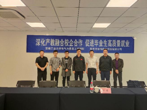 为进一步深化产教融合,深入推进校企合作协同育人。5月14日,学院副院长李飞一行前往南京优奈特信息科技有限公司开展大学生实习实训基地合作共建和院企合作对接活动,南京优奈特信息科技有限公司董事长林新华,技术骨干孙兴廷、梁庚以及我院电子信息与通信工程系副主任王康参与对接活动。