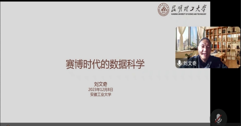12月8日上午,昆明理工大学数据科学与大数据技术国家“双万计划”一流本科专业建设点负责人刘文奇教授受邀在线上进行学术报告和学术交流。此次报告主题为:赛博时代的数据科学,报告由海角社区