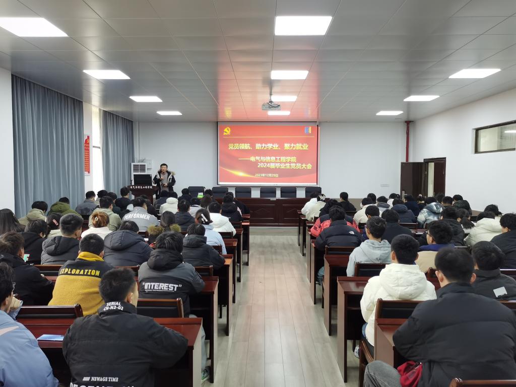在电气楼113会议室召开2024届毕业生党员大会。毕业班辅导员孔洋波、汤敏及毕业生党员参加了此次会议。